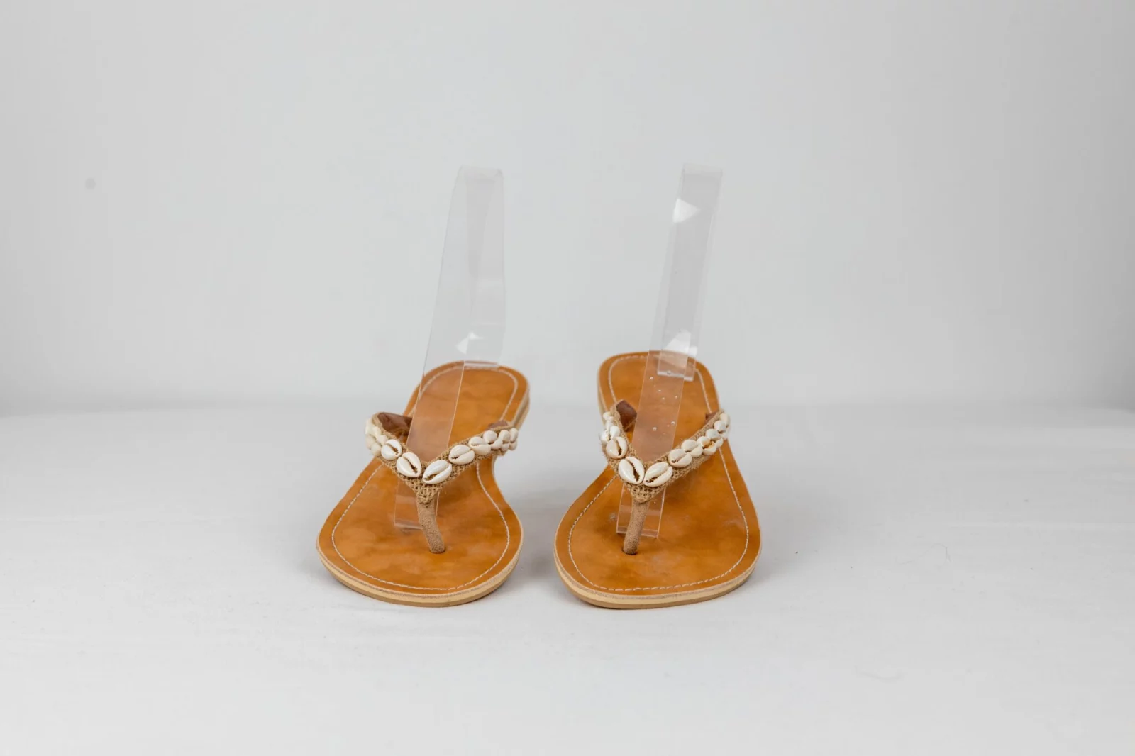 Estas sandalias tipo havaiana con detalles de conchas naturales son el calzado perfecto para darle un toque tropical y relajado a tus looks veraniegos. La tira central de las sandalias está adornada con conchas que evocan el ambiente de la playa, brindando un estilo fresco y natural. La base de cuero suave garantiza comodidad durante todo el día, mientras que la suela plana proporciona estabilidad para largos paseos bajo el sol. Su diseño sencillo pero elegante se adapta fácilmente a diferentes estilos y es ideal para combinar con vestidos de verano, pantalones cortos o faldas. Perfectas para disfrutar de un día en la playa o una tarde relajada en la ciudad.