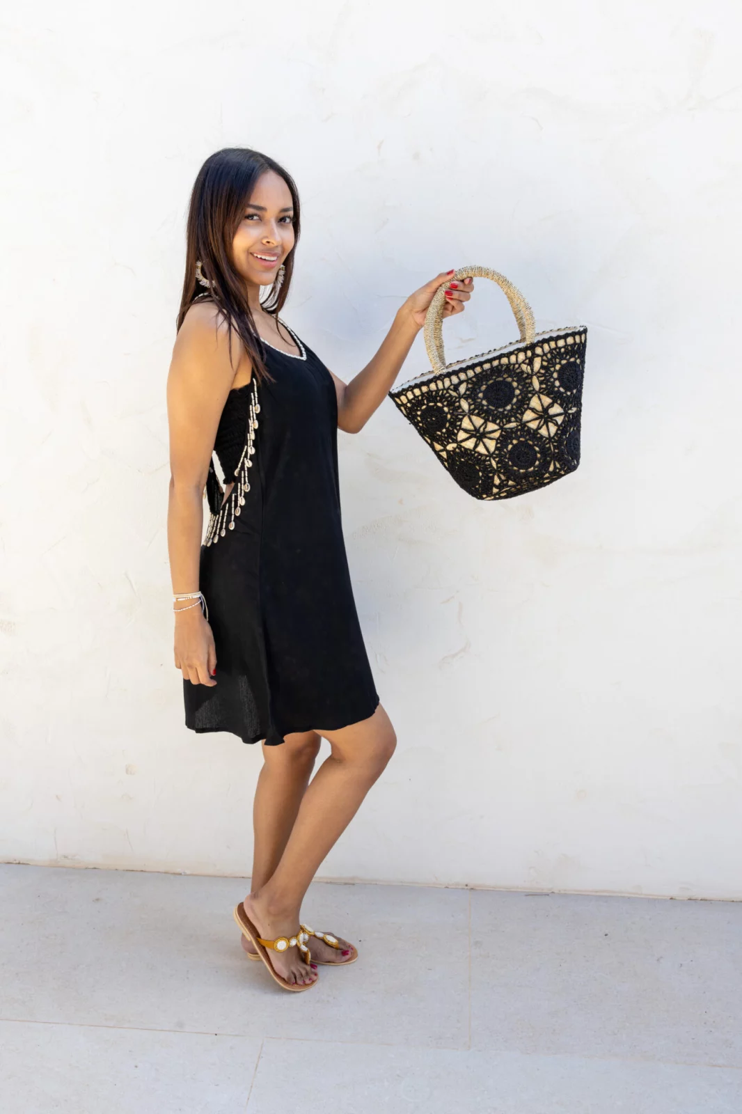 Queda precioso con sandalias planas, capazos o bolsos de rafia, y unos pendientes largos. También puedes llevarlo como vestido de playa encima del bikini, o como look casual con un kimono o chaqueta ligera.