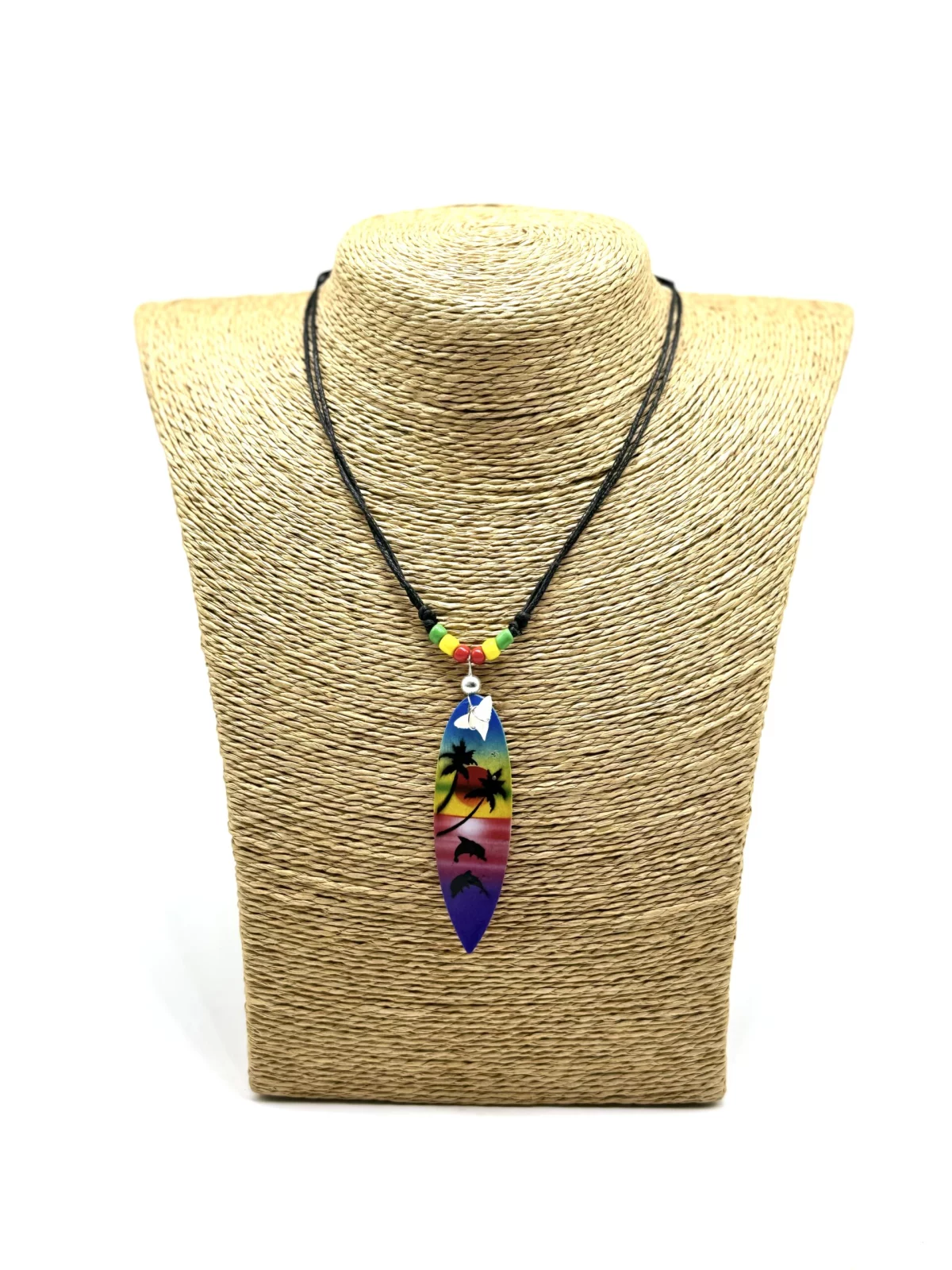 Collar ajustable tabla de surf con paisaje típico de Bali.